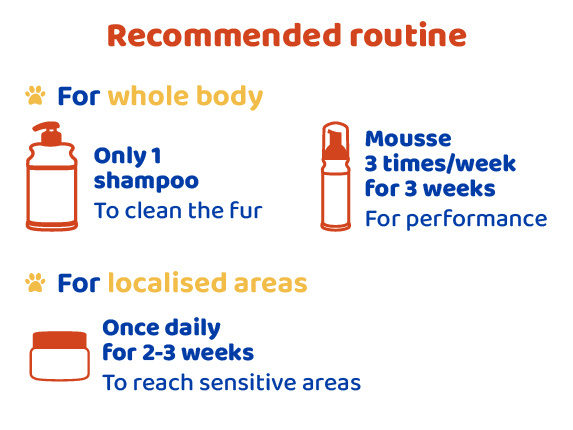 3 Gatellet M., Bruet V., Cadot P-M., Laffort C., Noli C., Ordeix L., Kesteman R., Ollivier E., De-Jaeger X. (2020). Performance of two protocols combining Chlorhexidine digluconate3%- and Ophytrium-based shampoo and mousse applications in the management of bacterial overgrowth in dogs. 14th UNISVET national congress, Milan, Italy, February 14-16th.